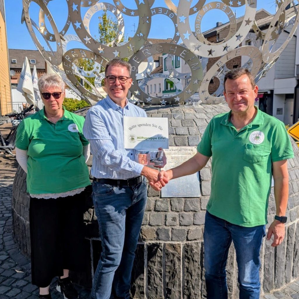 Eine Spende von 250 Euro hatte die Hilfsgruppe bereits im Vorfeld der Kommunalwahl im September von dem Mechernicher FDP-Bürgermeister-Kandidat Oliver Totter bekommen. Beim Mechernicher Stadtfest hatte der FDP-Ortsverband einen Info-Stand aufgeschlagen und dort das Geld für die Hilfsgruppe gesammelt. Kerstin und Thomas Tampier von der Hilfsgruppe Eifel hatten die Geldspende in Mechernich entgegengenommen.